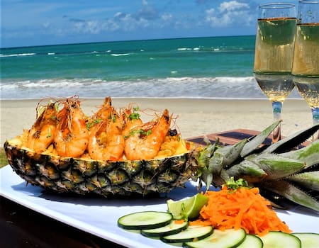 Gastronomía con ubicación estratégica en la Praia dos Carneiros