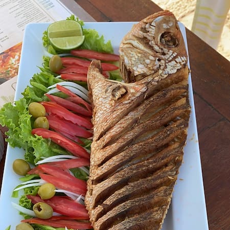 La experiencia se completa con la gastronomía local: mariscos frescos, pescados recién capturados y platos típicos del nordeste brasileño forman parte de la propuesta culinaria.