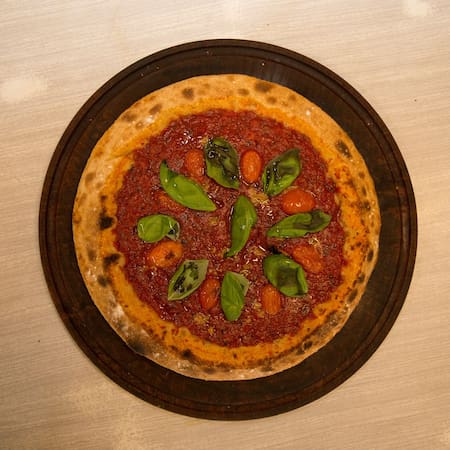 - Napolitana de Verano (muzzarella, tomates reliquia orgánicos, queso provolone La Blanqueada, ajo, orégano fresco y aceitunas verdes): $44000