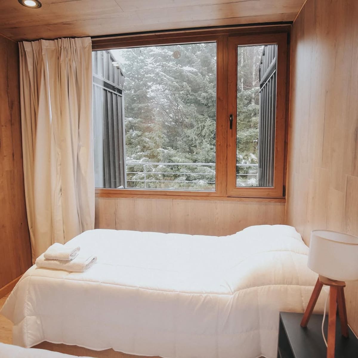 El resultado es un hotel boutique que combina confort, eficiencia constructiva y una respuesta arquitectónica sustentable, especialmente adaptada a las condiciones climáticas de la Patagonia. “El alojamiento dispone de zona de cocina totalmente equipada con nevera y cafetera, TV de pantalla plana y baño privado con bañera o ducha”, explican desde Booking.