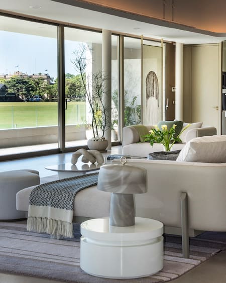El polo fue el punto de partida conceptual y también el sello identitario del proyecto. A partir de esa impronta, se diseñó un conjunto donde todas las residencias cuentan con vistas abiertas al Campo Argentino de Polo, además de panorámicas de 360° que incluyen el río, el hipódromo y el skyline urbano, logradas mediante una cuidada integración entre paisaje, arquitectura y ciudad.