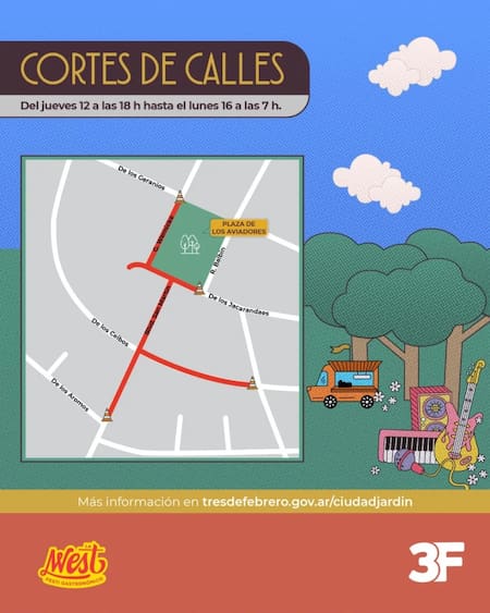 Para quienes quieran conocer este barrio —o para los propios vecinos que quieran recorrerlo— este fin de semana será una ocasión especial. El lugar celebra sus 82 años y la Municipalidad de Tres de Febrero lo festeja con una serie de eventos que se realizarán desde el viernes 13 (de 18 a 00 h) hasta el domingo 15 de marzo (de 12 a 00 h). Las actividades tendrán lugar en la Plaza de los Aviadores, ubicada en la intersección de Boulevard San Martín y De los Jacarandaes.