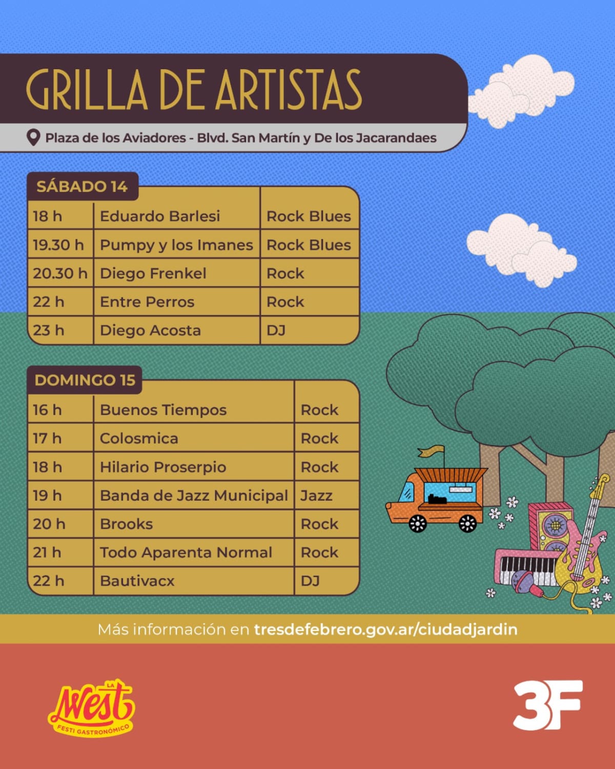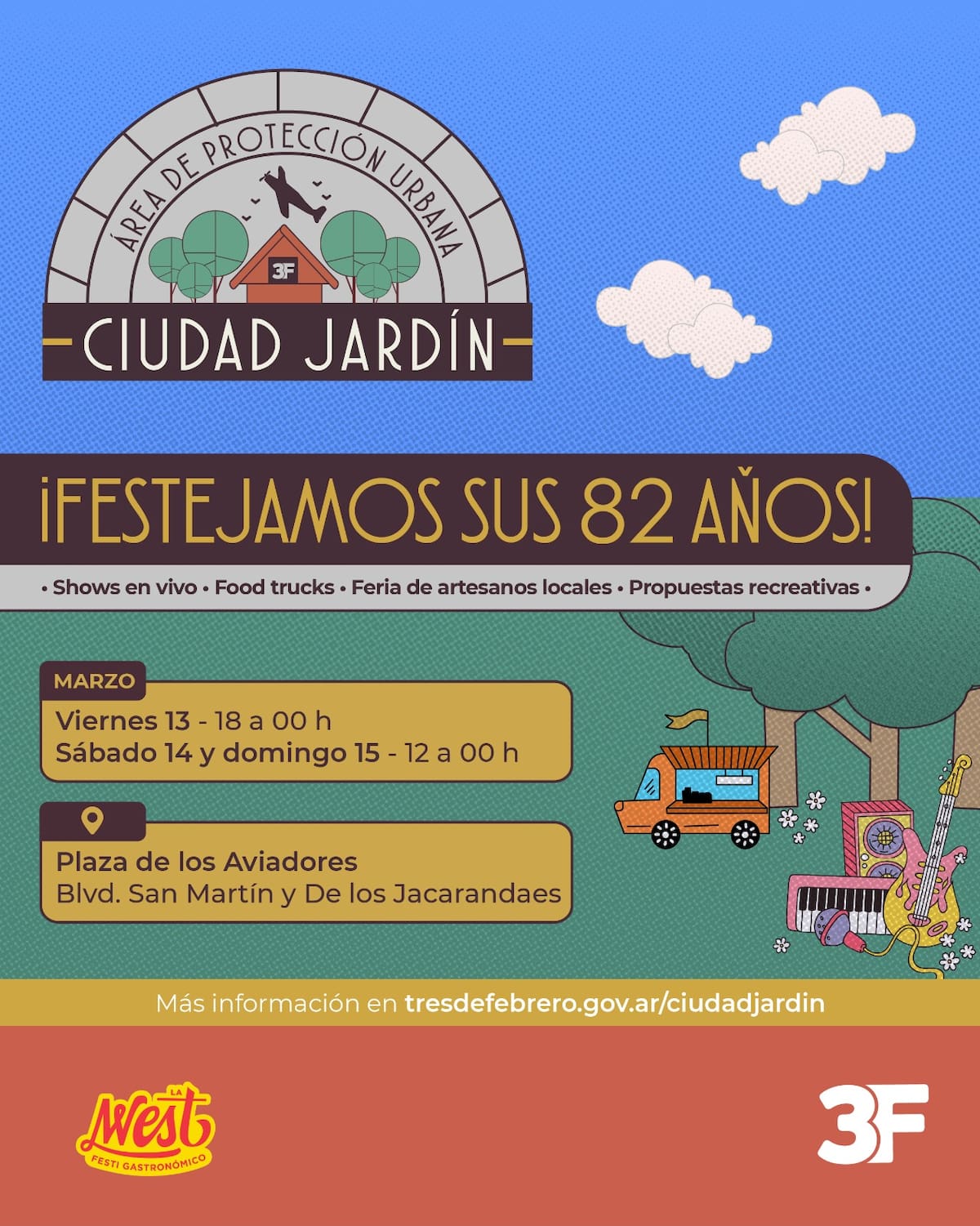 Para quienes quieran conocer este barrio —o para los propios vecinos que quieran recorrerlo— este fin de semana será una ocasión especial. El lugar celebra sus 82 años y la Municipalidad de Tres de Febrero lo festeja con una serie de eventos que se realizarán desde el viernes 13 (de 18 a 00 h) hasta el domingo 15 de marzo (de 12 a 00 h). Las actividades tendrán lugar en la Plaza de los Aviadores, ubicada en la intersección de Boulevard San Martín y De los Jacarandaes.