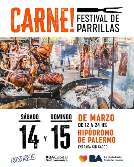 El festival se realizará el sábado 14 y domingo 15 de marzo, de 12 a 00, en el Hipódromo de Palermo. Durante ambas jornadas habrá 35 stands y food trucks con carnes en todas sus variedades. El público podrá disfrutar de distintas técnicas de cocción como asador criollo, kamados, fogoneros y ahumadores, además de una gran variedad de cortes.