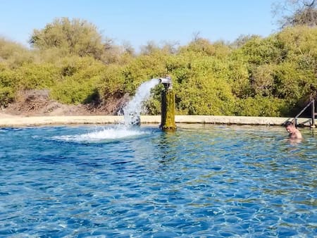 Durante los trabajos apareció una fuente termal natural que con el tiempo se transformó en un atractivo turístico. Hoy, cada año llegan visitantes que buscan desconectarse del ritmo de las grandes ciudades y pasar unos días en este rincón tranquilo del norte cordobés.