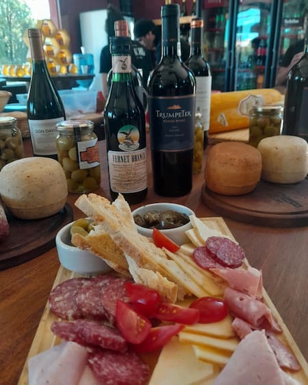 La experiencia comienza con una recepción que incluye tortas fritas, empanada frita de carne cortada a cuchillo y una picada de fiambres. Luego llega uno de los platos fuertes: la parrillada libre, con cortes clásicos como asado, chorizo, morcilla, matambre y pollo, entre otras opciones.