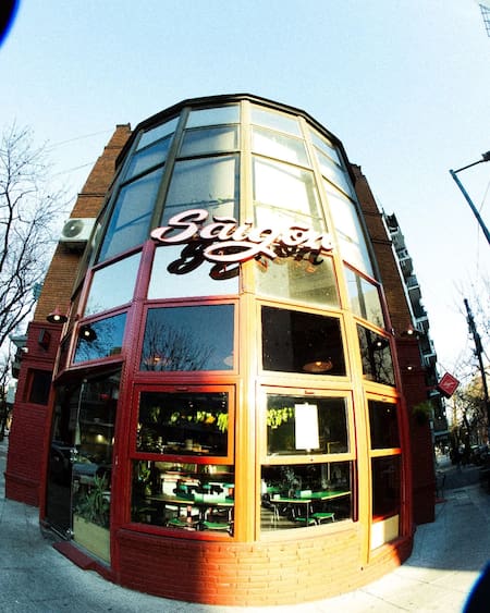 Ubicado donde supo funcionar un antiguo bodegón español, en el primer local de Saigon Noodle Bar, al igual que en sus otros salones, predomina una ambientación descontracturada e informal. También sorprende su barra con cocina a la vista, donde es posible recorrer con la mirada cómo se confeccionan los ítems del menú. Colores tenues, texturas de madera y hierro se replican en San Telmo, Retiro y Palermo, al igual que un colorido neón que reza “Pho Open”, en referencia a su plato más representativo.