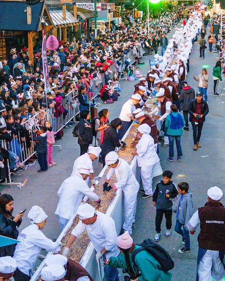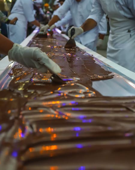 Uno de los momentos más esperados será nuevamente la elaboración de la barra de chocolate más larga del mundo, prevista para el viernes 3 de abril sobre la calle Mitre. La pieza alcanzará los 222 metros y requerirá más de dos toneladas de chocolate.
