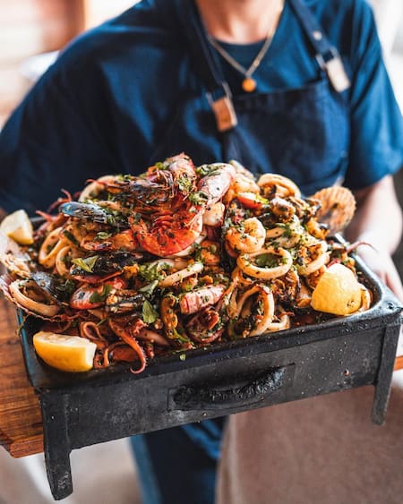 Entre los platos más elegidos para el Viernes Santo se encuentran el lenguado grillado con oliva, la merluza fresca a la plancha, el pulpo crocante con papas y distintas opciones de mariscos de inspiración mediterránea. También se destacan sus entradas frías ideales para compartir.