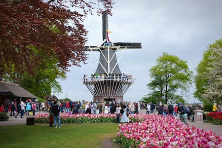 Uno de los símbolos del parque es su molino de viento tradicional. Desde la plataforma superior se obtiene una de las mejores vistas del paisaje circundante: extensos campos de bulbos que se extienden en franjas de rojo, amarillo, naranja y violeta hasta perderse en el horizonte.