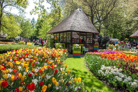 En los alrededores es posible alquilar bicicletas para recorrer los campos de cultivo y los caminos rurales entre canales y casas típicas. Otra opción es navegar en pequeñas embarcaciones eléctricas que se deslizan en silencio por los canales, ofreciendo una perspectiva única de los tulipanes a nivel del agua.