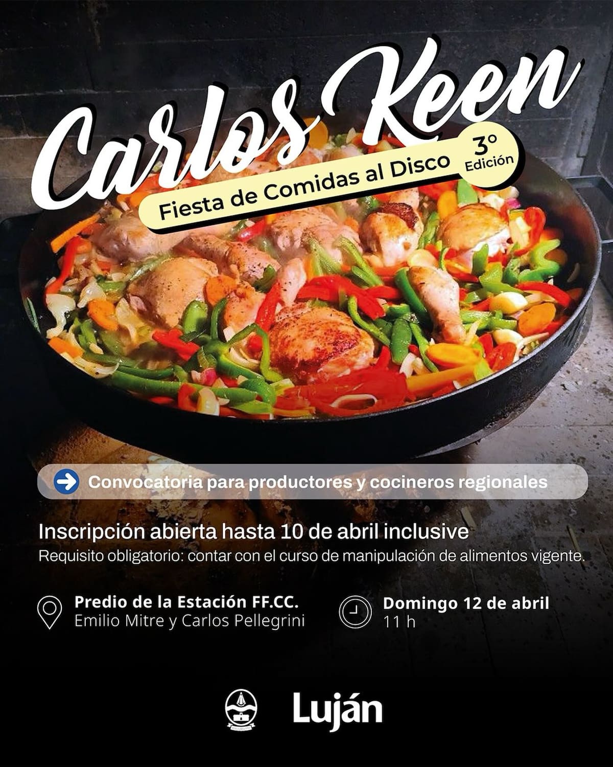 Más de veinte cocineros elaborarán distintos platos al disco: pollo, empanadas fritas y guiso de lentejas. Carlos Keen se convierte en sede de esta deliciosa celebración en su tercera edición el domingo 12 desde las 11 de la mañana en el predio de la Estación FF. CC., entre Emilio Mitre y Carlos Pellegrini.