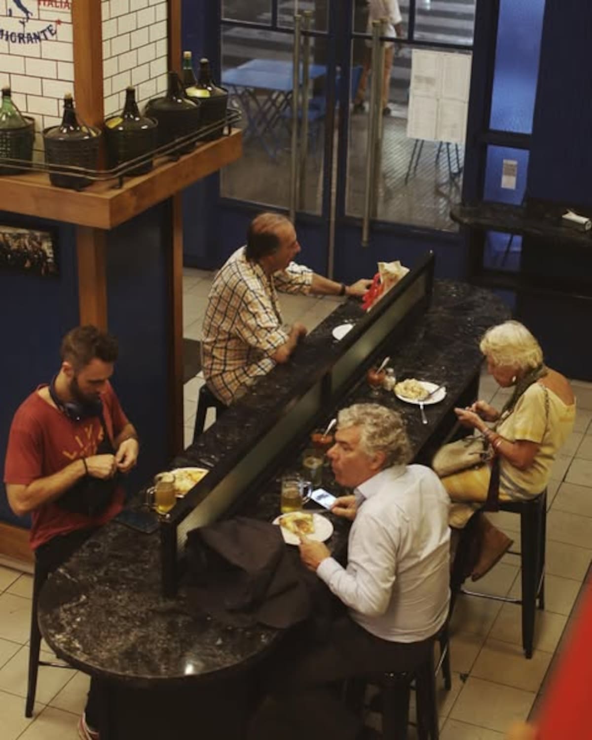 El formato es simple: se pide en la barra, se come de pie y no hay mozos ni tiempos largos. Todo sucede rápido, con el horno trabajando sin pausa y las porciones llegando calientes a la mano del comensal.