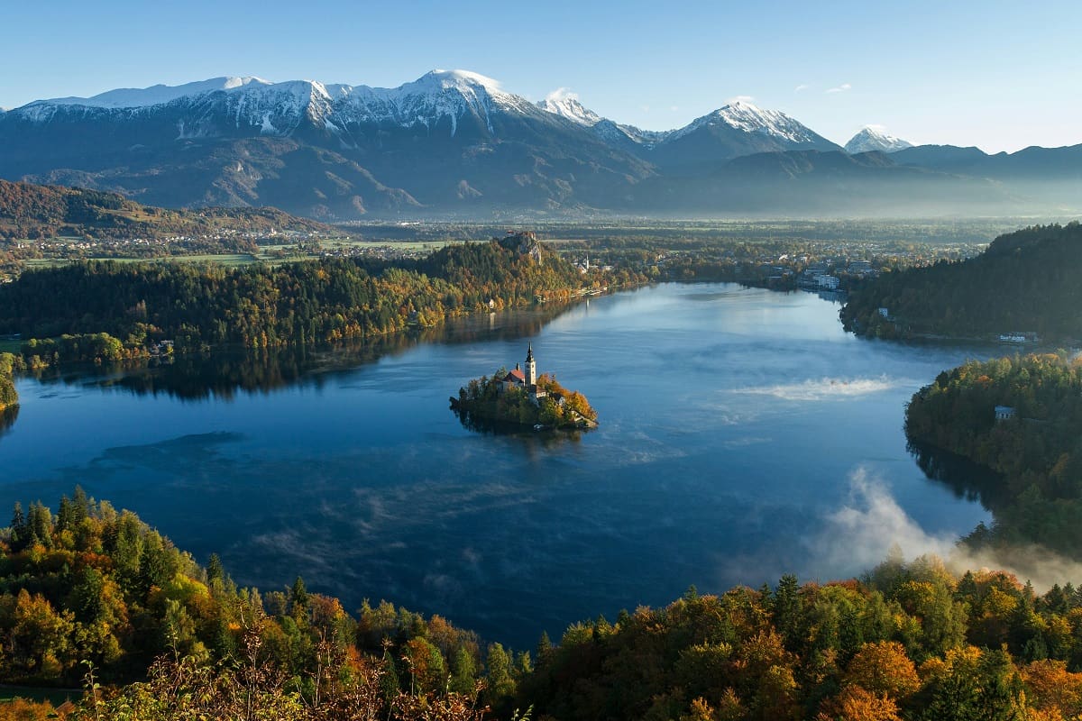 Bled atrae por su lago de aguas esmeralda y la pequeña isla central con iglesia, rodeada por los Alpes Julianos. El castillo medieval y los paseos en bote añaden un carácter escénico notable.