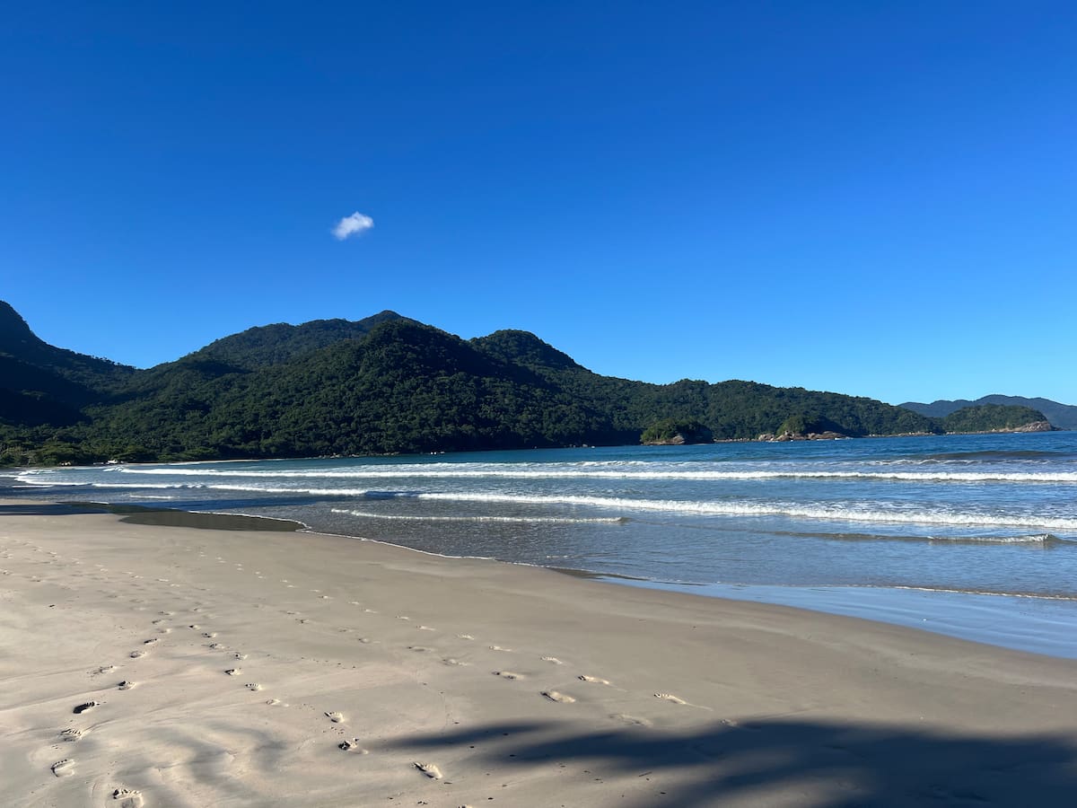 La playa es extensa, de arena clara y con un mar que suele ser más agitado que en otras zonas de Ilha Grande. Al no estar urbanizada ni contar con grandes servicios turísticos, conserva un aire salvaje y tranquilo, ideal para quienes buscan desconectar y disfrutar de la naturaleza en estado puro.
