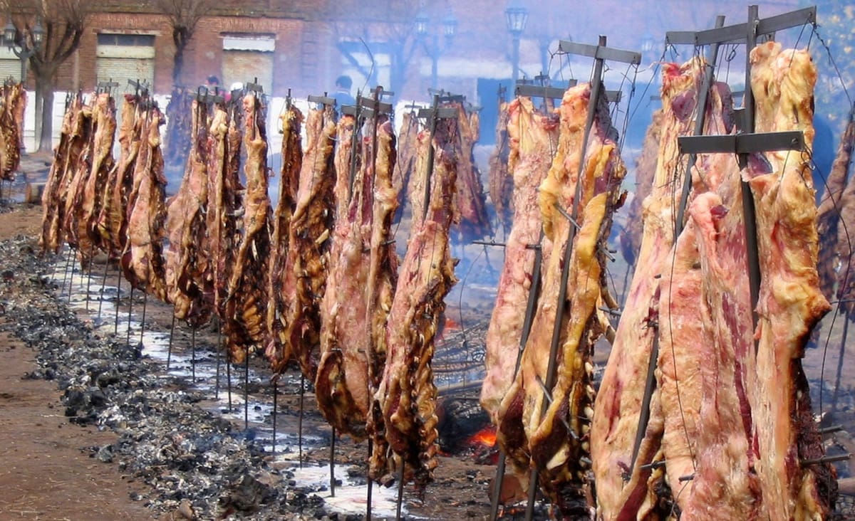 El corazón del encuentro está en la Sociedad de Fomento de Uribelarrea, donde se cocinan al mismo tiempo más de 1.300 costillares al asador, siguiendo técnicas criollas y tiempos largos de cocción. El fuego se prende desde temprano y marca el ritmo de una jornada que dura todo el día.