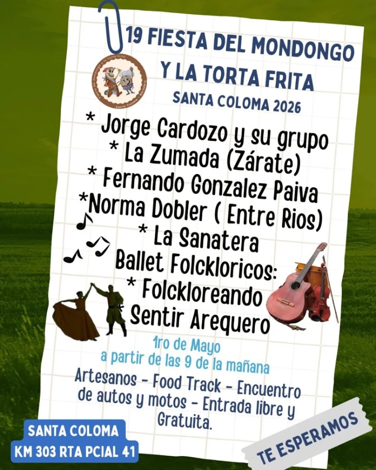 Más allá de los platos estrella (el humeante mondongo y las infaltables tortas fritas), la celebración despliega una agenda pensada para todo público. Habrá feria de artesanos, exhibición de autos y motos, carros gastronómicos, cantinas y espacios recreativos para los más chicos. La música en vivo, con artistas locales y regionales, completará el clima festivo durante toda la jornada.