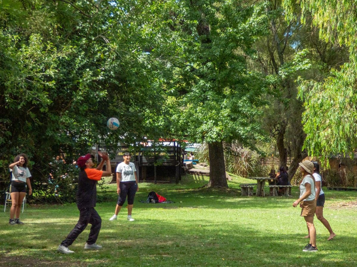 Además, el lugar ofrece juegos infantiles, espacios para actividades recreativas y la posibilidad de utilizar instalaciones como la pileta en temporada. Todo esto convierte la propuesta en una opción ideal tanto para familias con niños como para adultos mayores que buscan un plan relajado.